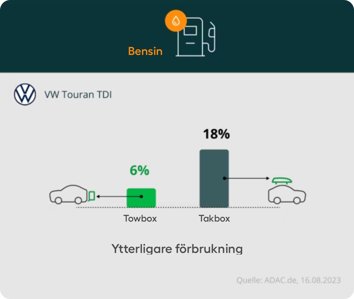 Modellen TowBox V5 ger din bil 330 liter extra lastutrymme. Du får samma utrymme som i en kombibil – även om du kör en mindre bil.