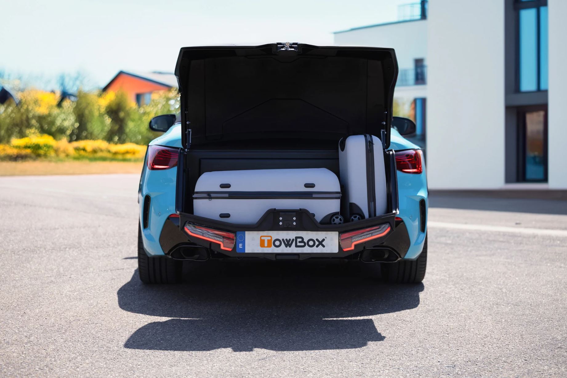 TowBox kan snabbt och enkelt monteras av en enda person utan några verktyg. Den fästs direkt på dragkroken via ett användarvänligt snabbspännesystem.