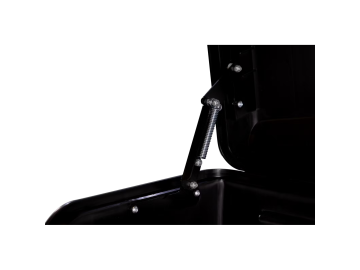 Speciellt praktiskt: Tack vare fällmekanismen kan man öppna bagageutrymmet på många bilmodeller även när boxen är monterad — på så sätt kan man ha boxen på dragkroken och ändå komma åt bilens bagageutrymme.