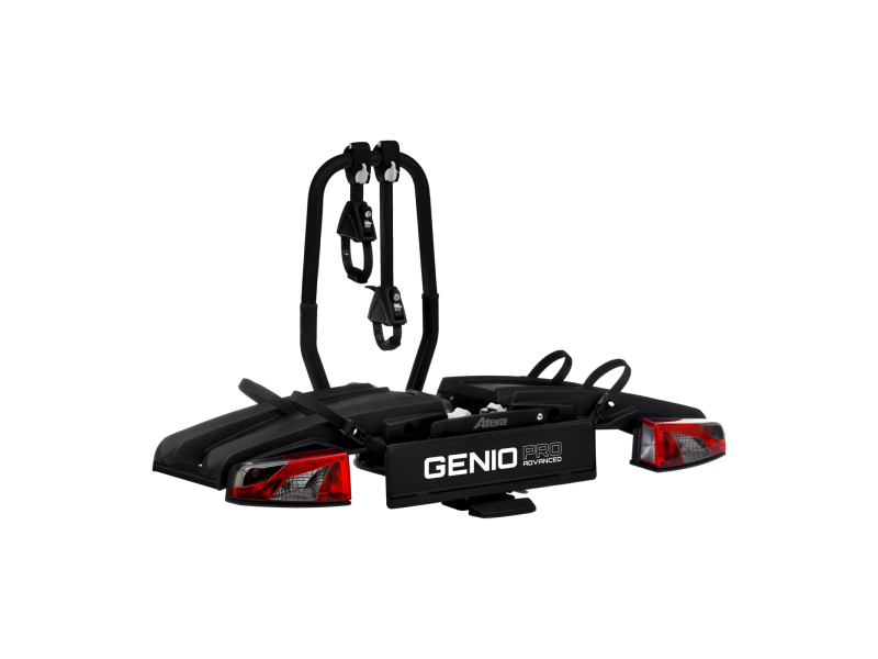 Atera Genio Pro Advanced black edition är en kompakt, stabil och säker cykelhållare. Den har två nedfällningsvinklar, det betyder att den är idealisk för skåpbilar och bussmodeller - bakluckan kan öppnas även med monterad cykelhållare. Du monterar hållaren barnsligt enkelt på nästan vilken dragkrok som helst och när den inte används kan den fällas ihop med snabblåset så att den tar lite plats i bilen eller i garaget. Atera Genio Pro Advanced black edition kan utan besvär ta upp till 2 cyklar eller elcyklar. Med utvidgningen 204123 som kan fås som tillval går det även att transportera en tredje cykel. Dessa hittar Du under "Du kanske också gillar".