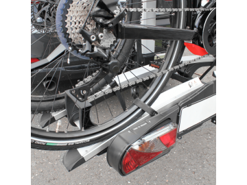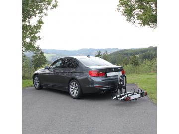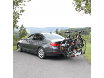 Cykelhållaren är nedfällbar genom ett pedaltryck för bekväm åtkomst till bagageutrymmet även när cyklarna är monterade