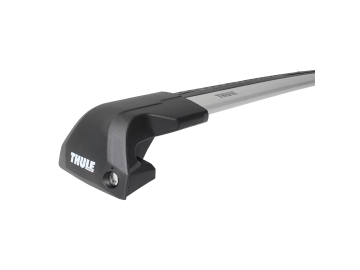 Thule Wingbar EDGE Silver av lätt aluminum ligger tätt intill biltaket. Den extravaganta designen passar moderna bilar och minskar luftmotståndet och vindbruset på ett oöverträffat sätt.